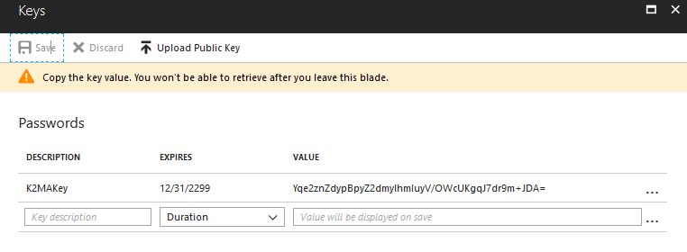 - Type a Description for the key and select an expiry time in the drop-down. Click Save to generate a Key Value.