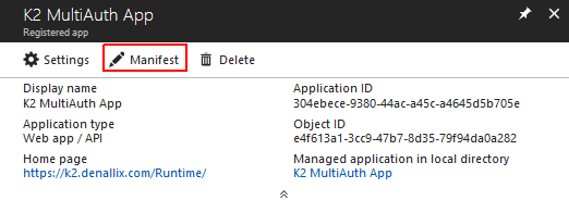 This ends your AAD app configuration. You should have the following items for configuring K2: