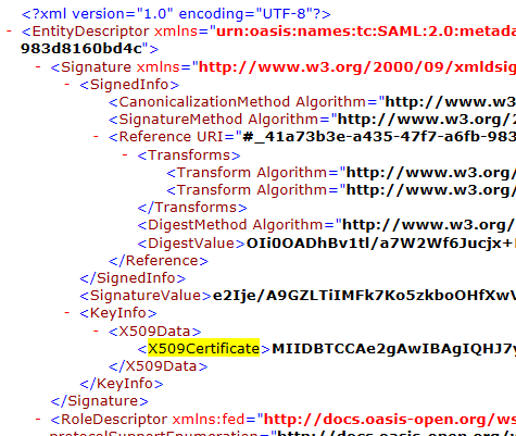 - Open a browser and browse to the Federation Metadata Document URL you copied. It should open an XML file.
