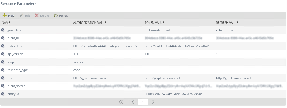 - Select entity_id from the Resource Parameters list and click Edit. Enter your tenant ID (the GUID in your endpoints) in the Token Value and click OK.