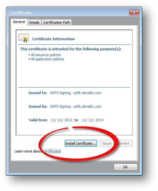 - Right-click the Token-signing certificate and select View Certificate.