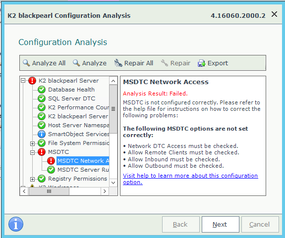 - SQL Azure does not support MSDTC. Because of this, you may see an MSDTC error during the configuration analysis of the install. This is a known issue that can be ignored.