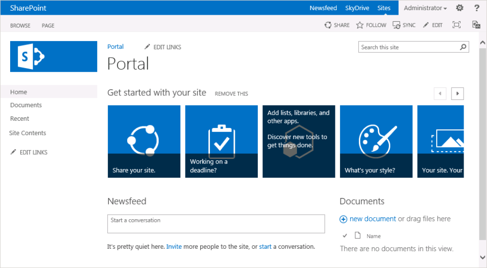 When the Portal opens, click Add lists, libraries, and other apps. The Site Contents page appears.
