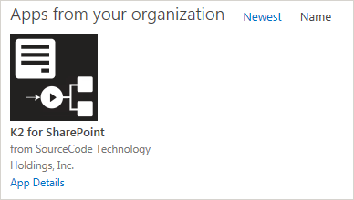 For more information on Adding the App, see the Add topic in the K2 for SharePoint User Guide.