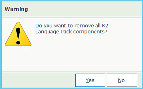 If you have installed languages from the K2 Language Pack, run the K2 Language Pack Setup Manager tool to remove the installed languages. This will remove all selected language components, Start Menu shortcuts, and related setup files from the Program Files directory.