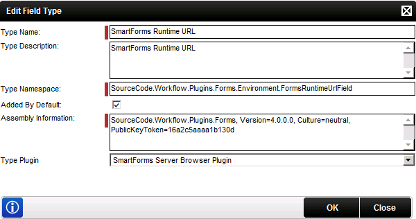 The field types can also be set in K2 Process Portal. Browse to K2 Process Portal> Administration Settings> Environments. To change the field type settings click in the relevant field and make the change, then click OK to save the change.
