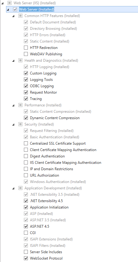 When using Internet Information Services (IIS) 8, the following settings need to be enabled before installing K2 smartforms: