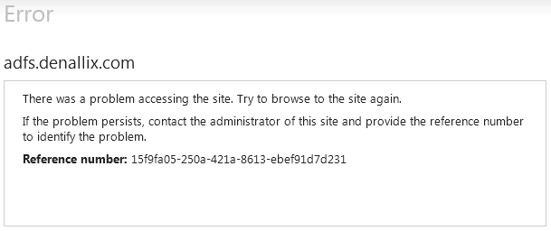 A generic error message is displayed when AD FS encounters an issue with the user login.