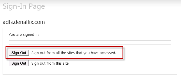 - Expire Cookies: Navigate to [IISWebSite]/adfs/ls/idpinitiatedsignon.aspx and click on Sign Out from all sites.