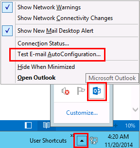 Option 1: Use Outlook's "Test E-mail AutoConfiguration" function