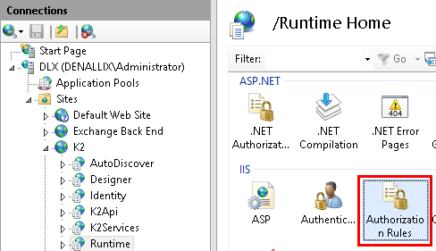 - Open Authorization Rules from the IIS section and edit as needed:
