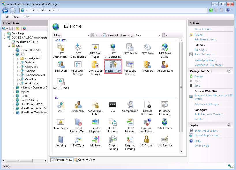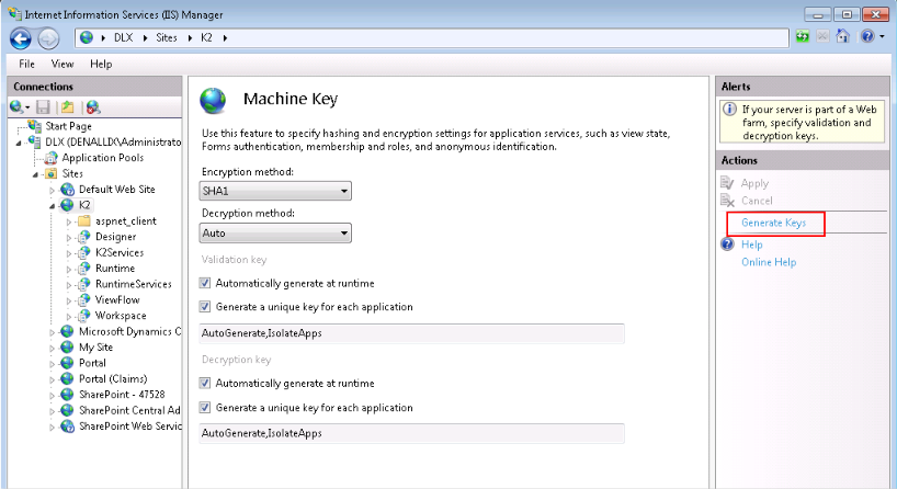 Generate the machine keys using Internet Information Services Manager.![]()