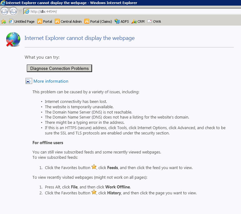 Refresh Internet Explorer to see if the page opens. If the following error occurs, perform an IIS reset. If the problem persist, restart the machine to reset any memory issues.