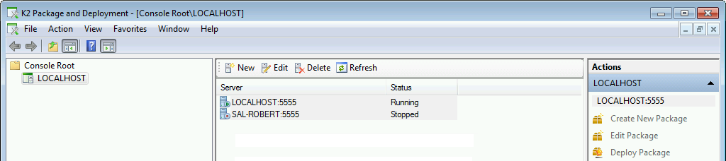 - Within the Package and Deployment console, you can now add a new target server. Click the New button above the server list column.