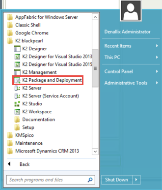 - Navigate to All Programs > K2 blackpearl > K2 Package and Deployment.
