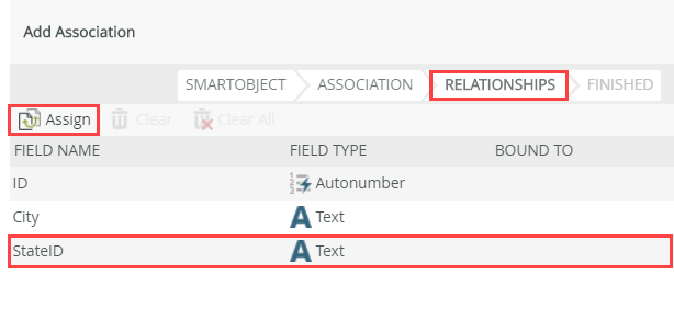 - On the Relationships screen, select the StateID property and click Assign.