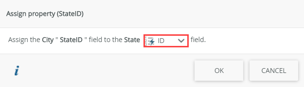 - On the Assign property (StateID) screen, select the ID property of the State SmartObject, and click OK.