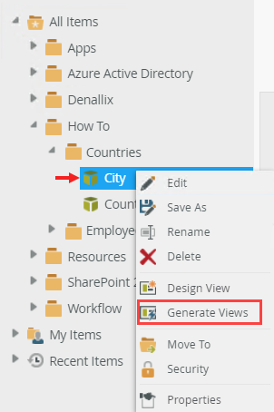 - Right-click the City SmartObject and select Generate Views.