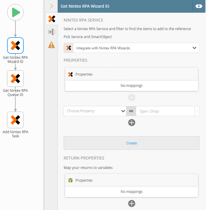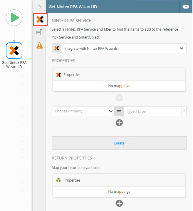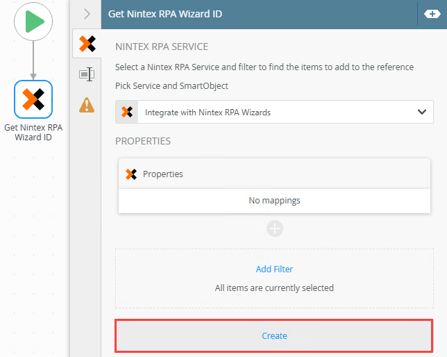 | Create Reference | Use this to create a reference to the retrieved Wizard ID to use in the Add Nintex RPATask step in a workflow. |