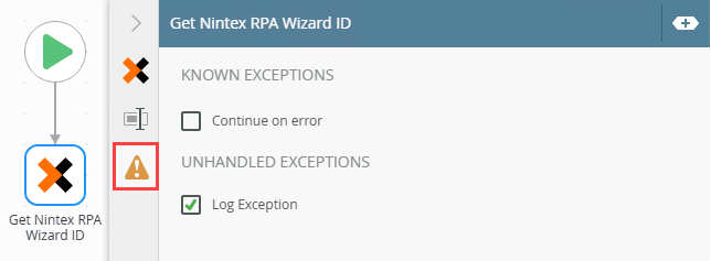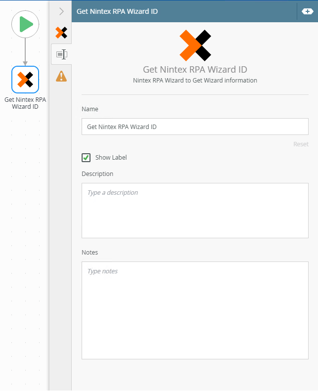 - Select the Get Nintex RPA Wizard ID tab. Use this tab to configure the steps properties.