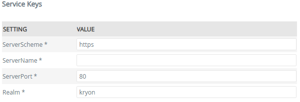| ServerPort | No (required) | Text | 80 | The ServerScheme port number. This is automatically filled and must not be removed |