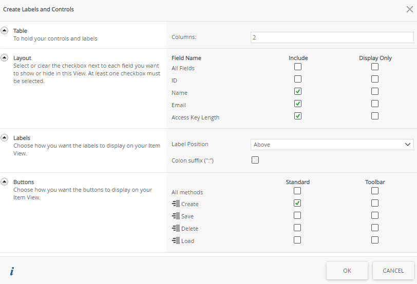 - Click Create Labels and Controls then select the checkboxes as in the image below and click OK to continue.