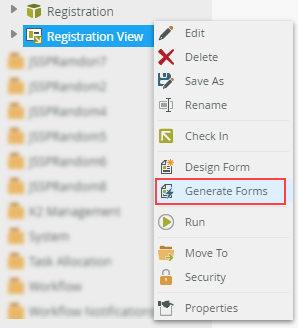- Right-click on the new view and then click Generate Forms. The new form is created in the same category as the view it was generated from.