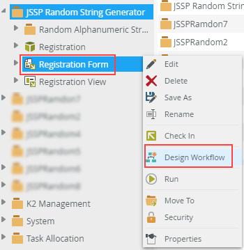- Right-click on the Form you generated earlier and click Design Workflow.