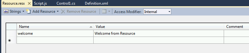 - Create an embedded resources file (in this example we have named the file Resources.resx)