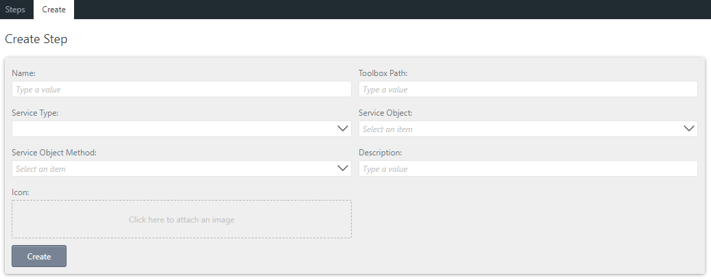 - Click Create to register your new custom step