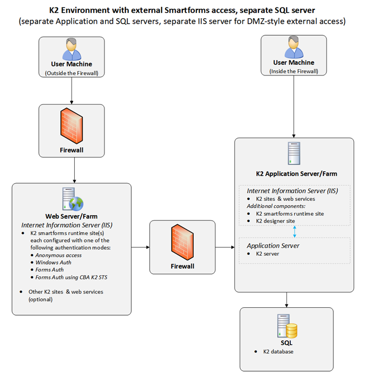 - The easiest authentication approach is where the DMZ web servers are joined to the same domain as K2. (Alternate domain approaches may also work if you configure the necessary trust. For these scenarios, you may need to contact K2 to help you plan out your deployment).