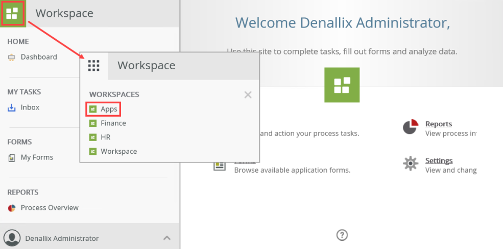- From your K2 Workspace, click the K2 Logo and then from the Workspaces section, click Apps.