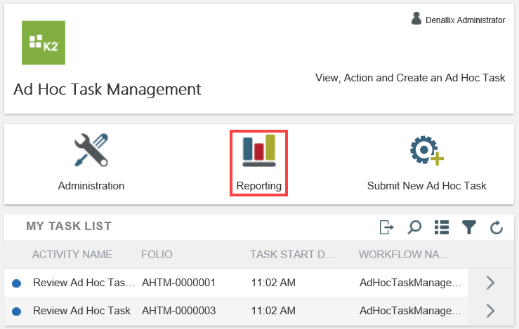 Activity Duration: This bar chart shows the average duration of task steps. If you have a workflow with many tasks steps, this report allows you to view which tasks are taking longer.