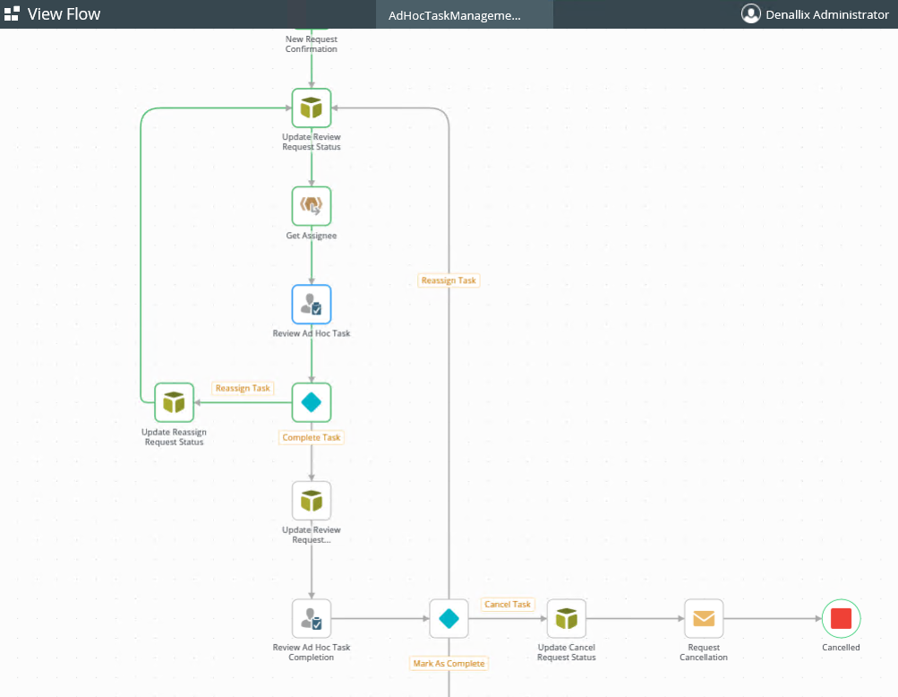 Use the View Flow report to see the current status of a workflow instance and the path followed. It gives you a live, visual representation of your workflow and helps you to gain more insight into events that occurred during the workflow instance.