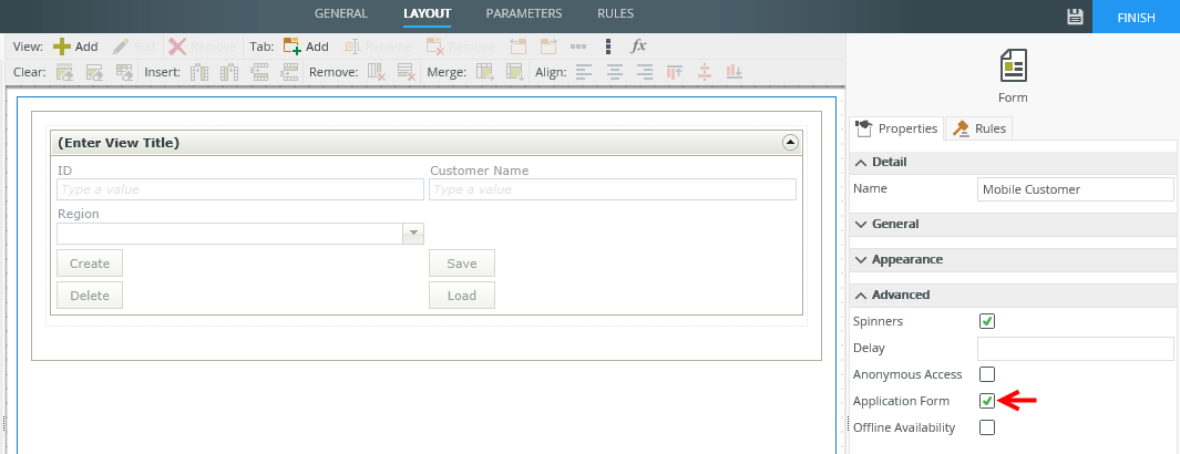Enable the Application Form property to make this form available in K2 Mobile and K2 Workspace. You can also enable the Offline Availability