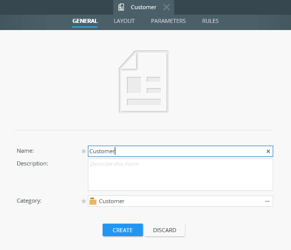 Category | The category where the form is to be saved | Select a category by clicking the ellipsis |