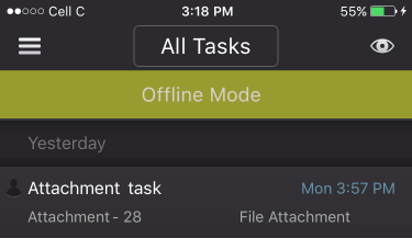 If you have no internet connection on your mobile device or if the K2 Mobile App is offline, an Offline Mode status displays in the Task List. See the Task List and Task Card Detail topics for information about the options that are available when your form is offline.