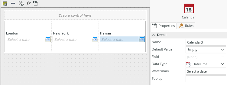 - When you use a rule to set the value of the control, you must first set the time zone of the control. (Don't use the Today property in the control's properties, rather set the time zone and then set the default value of today)