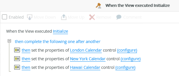 - Create a rule when the View executed Initialize to set the properties of the Calendar controls.