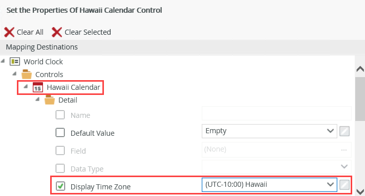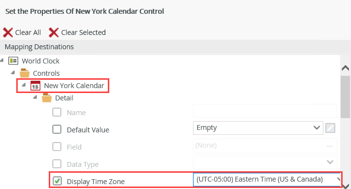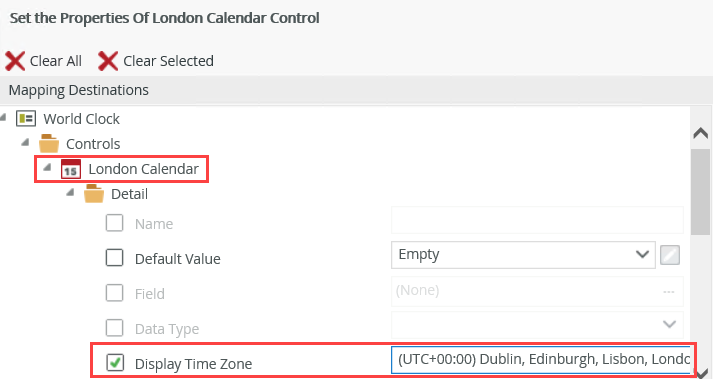 To configure the Display Time Zone property of the control you need to use the Set Control properties rule action. This allows you to use a particular time zone when displaying the control's value. You can configure this option with the Calendar, Data Label, Text Box and Text Area controls. This configuration is useful if you want to display the DateTime the same regardless of the end user location or time zone. Examples of where this feature is beneficial include: