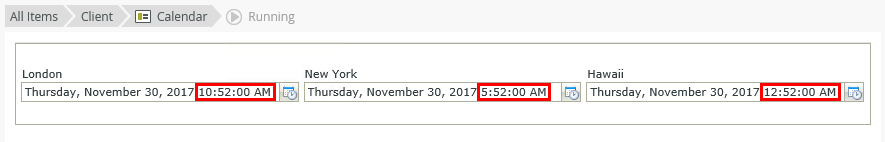 In the example below we use a world clock, where the user interface states the time zone and the date time.