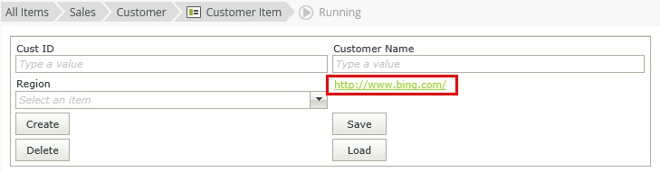 Expression | Opens the Expression Builder to configure expressions to populate the control with dynamically calculated values. You can use this property to specify the display and URL dynamically | Yes, see Control Properties Actions for more information. |