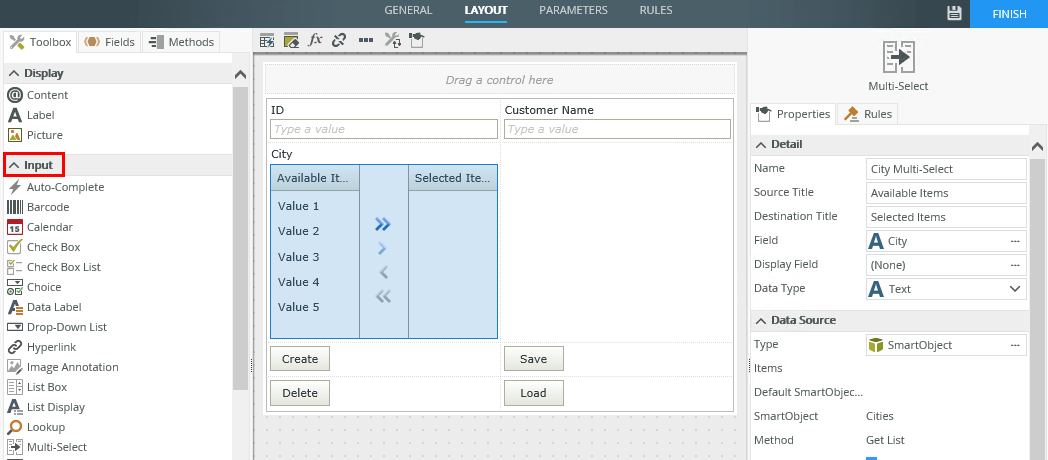 - Populate a list control with data: You can populate the control if its data source is a SmartObject