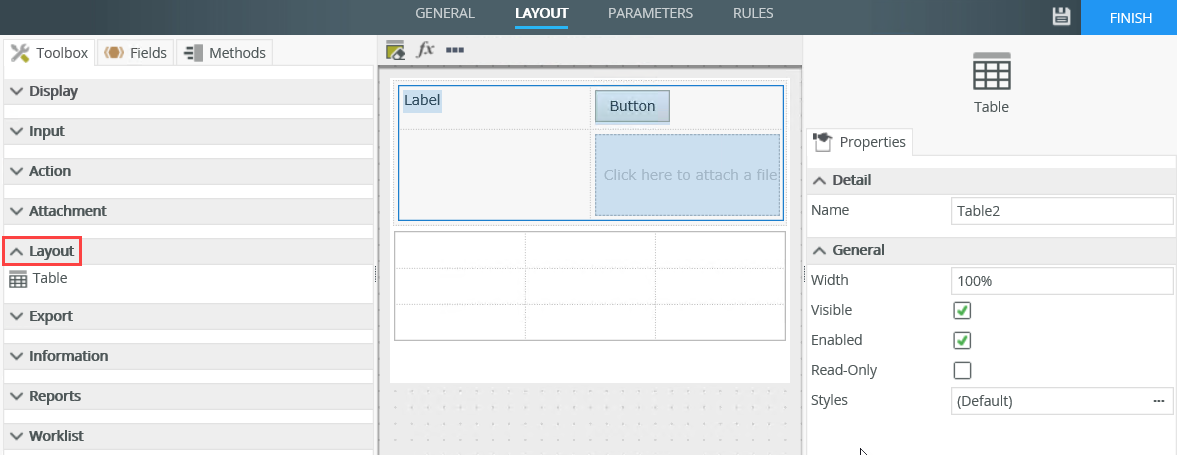 The Table control allows you to create a layout table in views and forms to help you organize other controls and apply styling to cells.