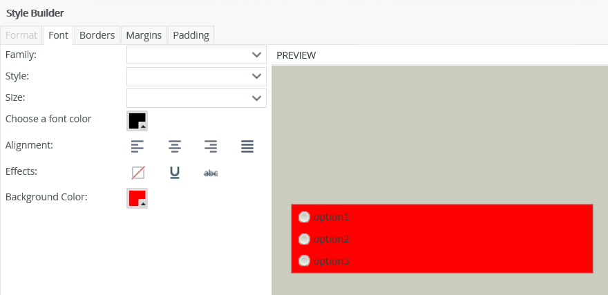 When the Style Builder opens, configure the background color to change to red when you select the Fail option.