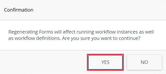 - The Confirmation dialog opens. Confirm that you want to regenerate the forms.