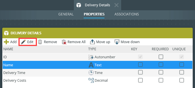 Key | All | Use this to set the property as a unique identifier for the SmartObject. | Check the check box to select property as the unique identifier. |