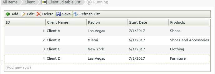 Use an Editable List view to create a view that displays and allows you to edit lists of information as shown here: