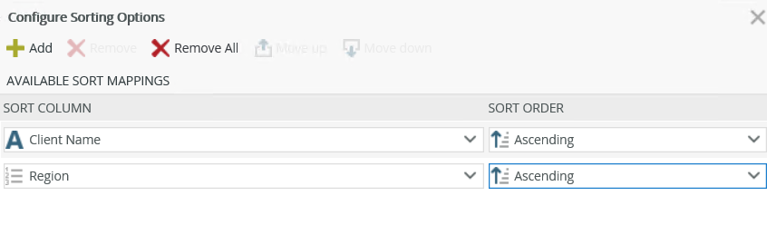 Move Up | Moves a sorting column one position up |