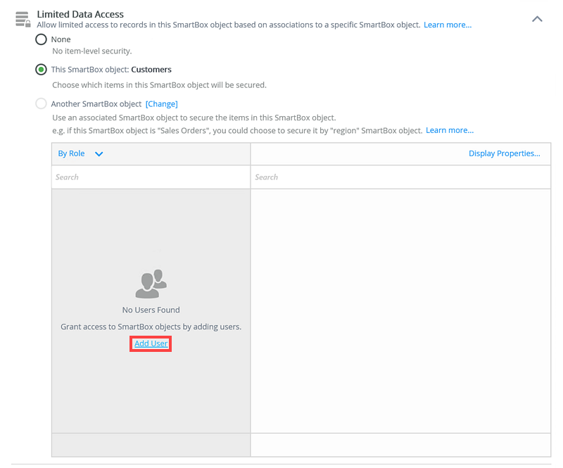 - On the Limited Data Access section, click This SmartBox object: Customers.